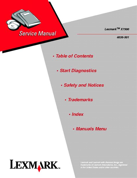 Currently you are looking for an Lexmark X7500 Service Repair Manual example that we provide here inside some type of document formats like as PDF, Doc, Strength Point, as well as images that will make it easier for you to create an Lexmark X7500 Service Repair Manual yourself. For a more clear look, you may open some examples below. All the examples about Lexmark X7500 Service Repair Manual with this web site, we get from many sources so you can create a better file of your own.